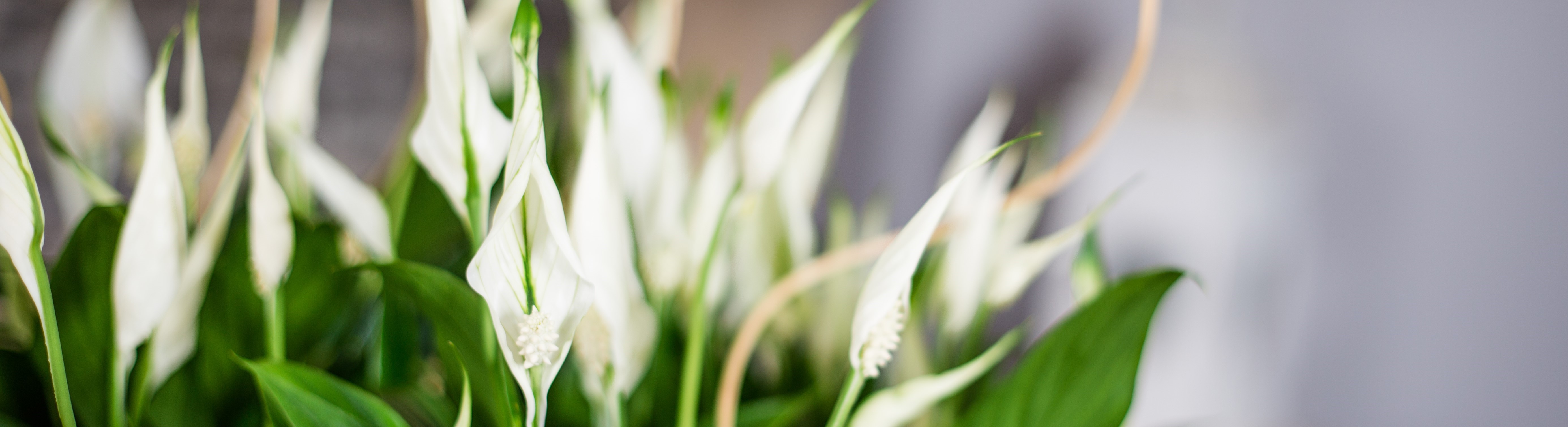 In first place is the excellent air purifying Spathiphyllum plant. Spathiphyllum flowers are always white, but they differ in size and number per species. The bigger the plant, the bigger the flowers, but this also depends on the variety. Read more about the Spathiphyllum here.